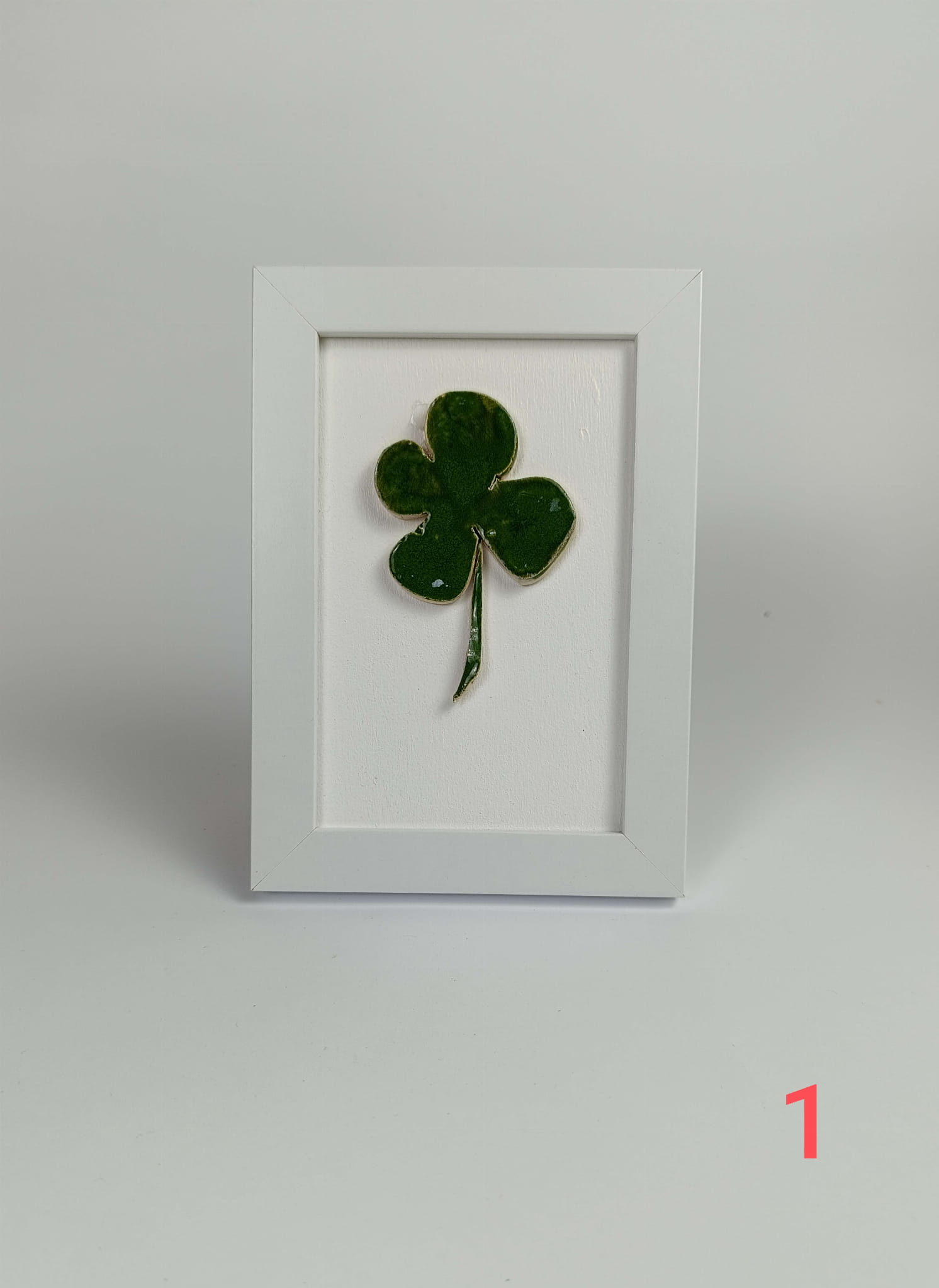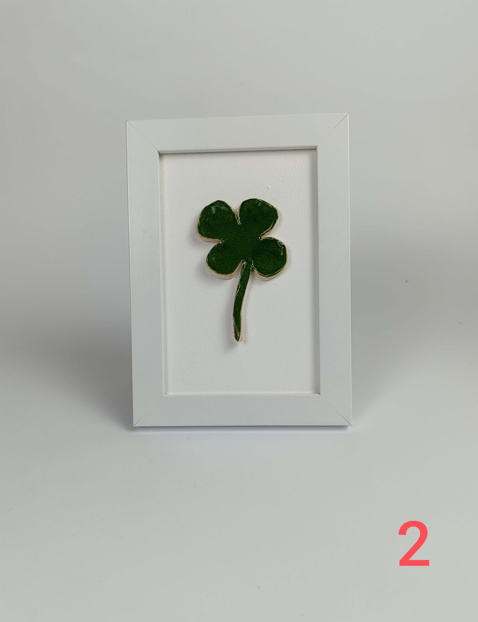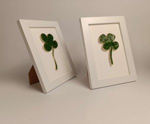 Mozaika ceramiczna Czterolistna Koniczynka o wymiarach zewnętrznych ramki 12,5cm x 18cm. Świetny prezent, zapakowana w pudełko prezentowym.