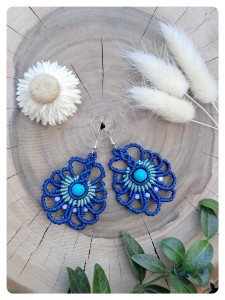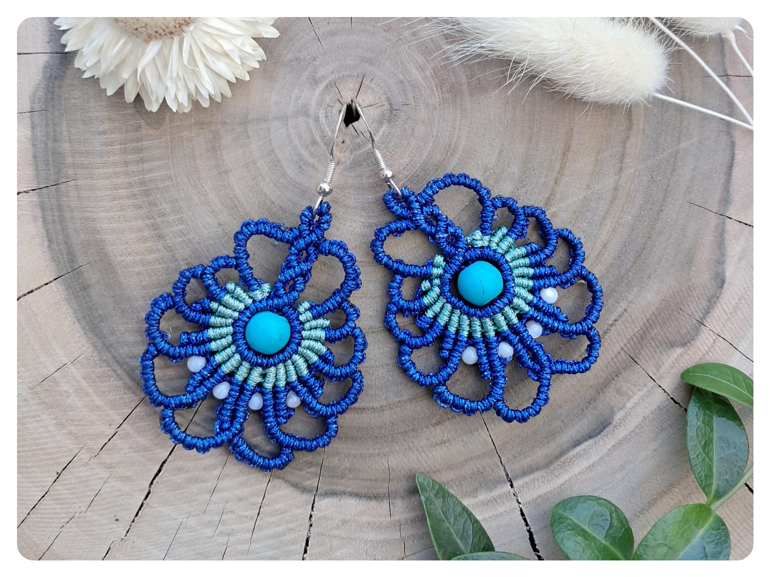 Unikatowe kolczyki z turkusem oprawionym techniką mikromakramy