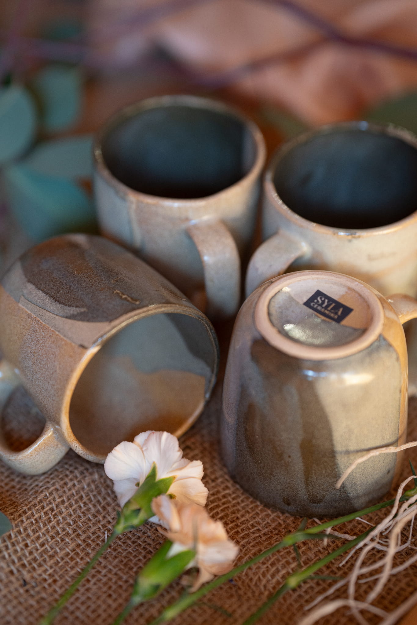 Kubki szkliwię kilkoma szkliwami, dlatego chociaż podobne to każdy różni się nieznacznie. Można je traktować jako zestaw, ponieważ te nieznaczne różnice dodają im atrakcyjności.
