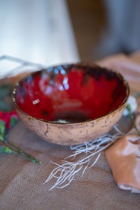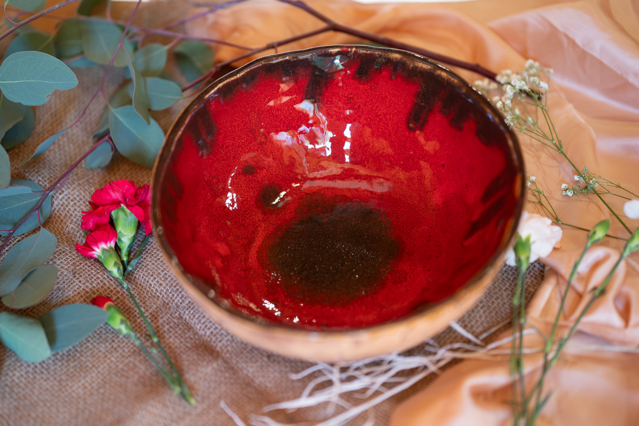 Misę Maria Stuart wykonałam ręcznie. Głęboka czerwień wewnątrz misy i stylizowana erozja zewnętrznej powierzchni nadają jej wyjątkowy charakter.