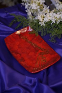 -fragment utworu napisałam złotem, które wypaliłam w piecu ceramicznym w temperaturze 800 stopni