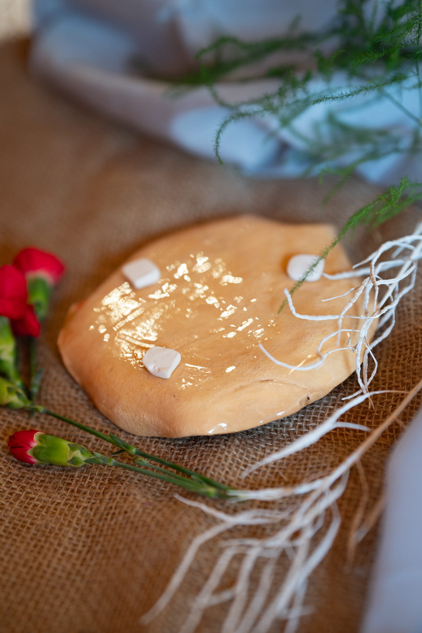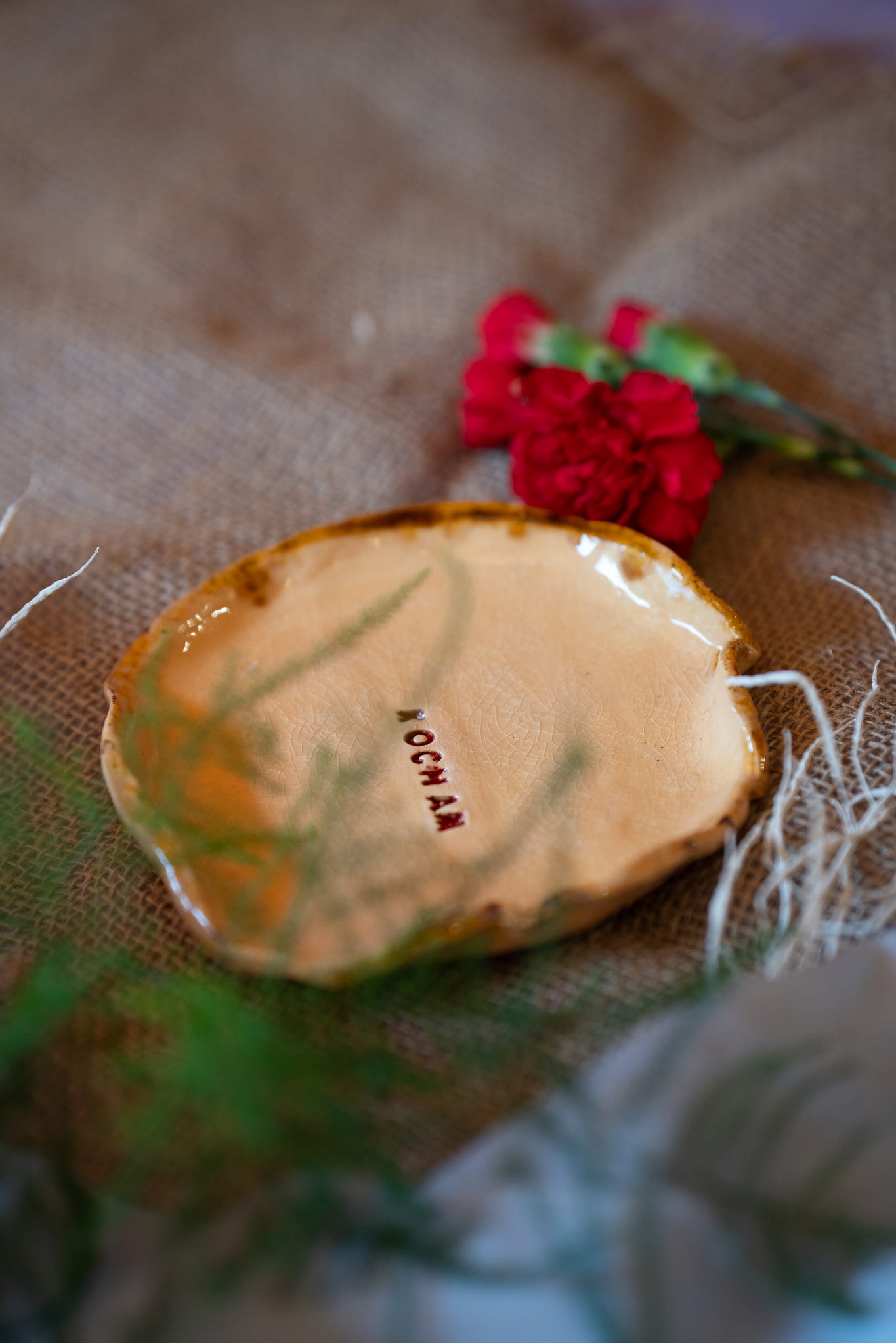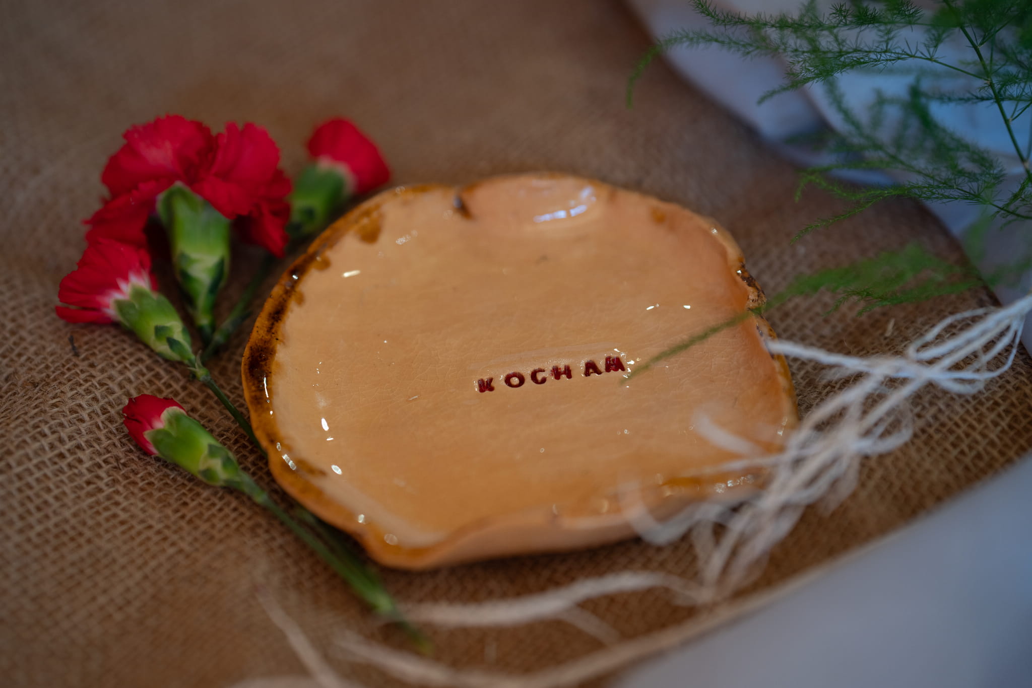 Paterę wykonałam ręcznie, przez co jest nieregularna i tym samym jest unikatowa, jedyna w swoim rodzaju. Paterę cechuje prostota, dzięki czemu napis KOCHAM jest mocny i wyrazisty.