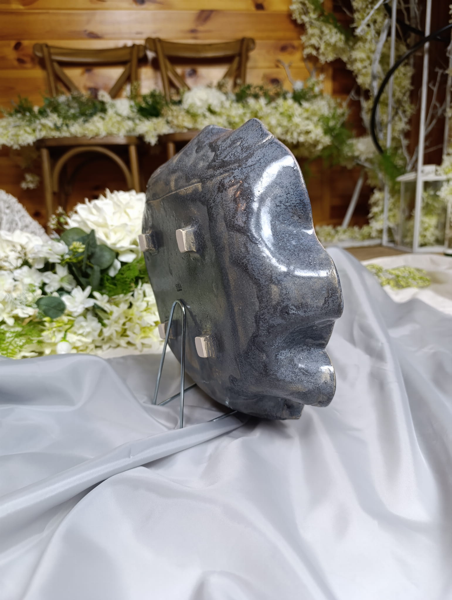 Linia górnej krawędzi jest pofalowana, co wzmacnia efekt dynamiczności patery. Dzięki nóżkom patera nie jest ściśle dociśnięta do powierzchni co daje jej dodatkowy atut.