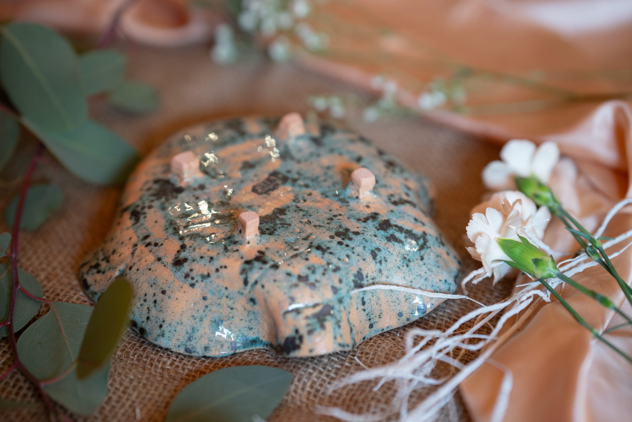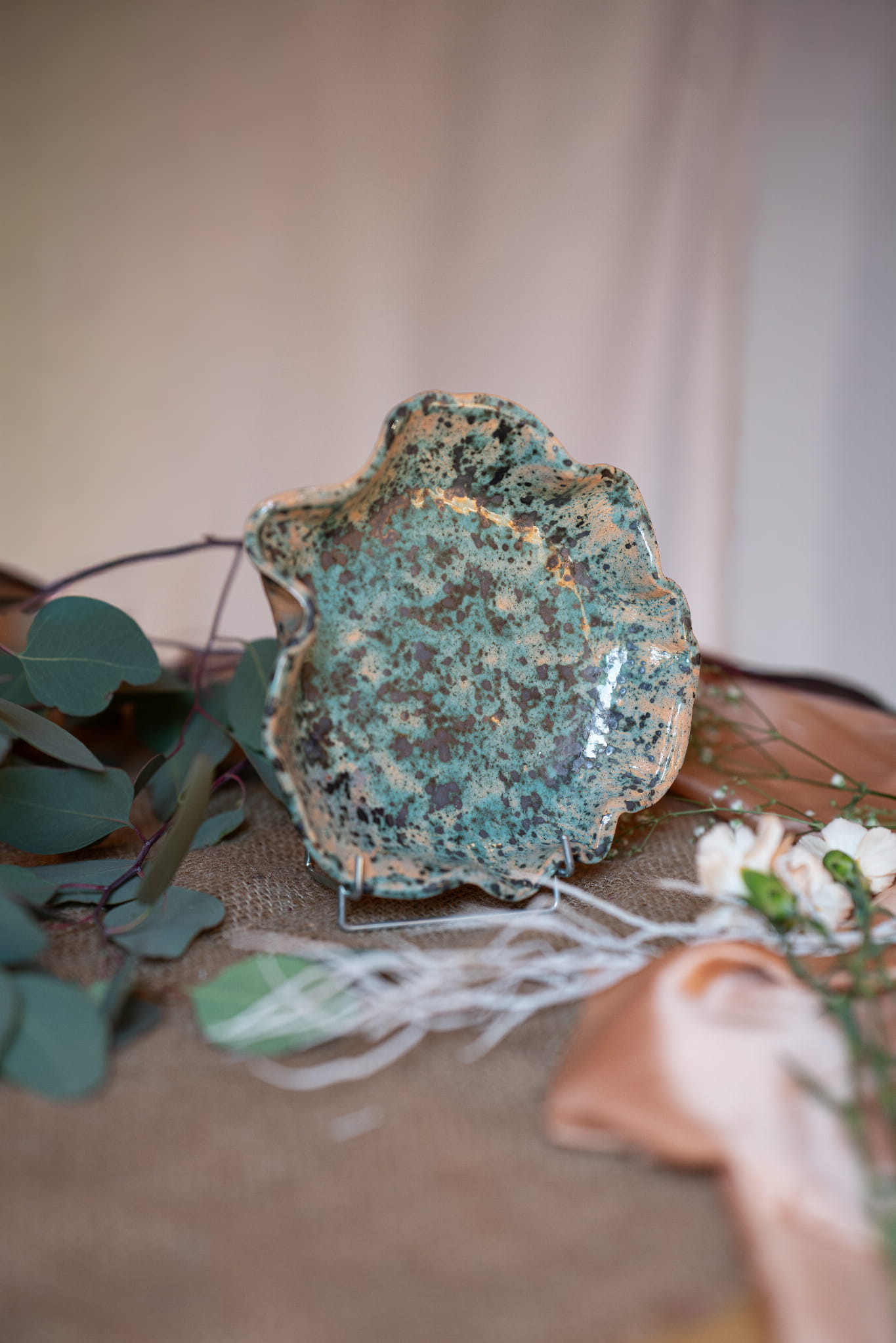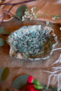 Paterę Travertin wykonałam własnoręcznie. Cechuje ją niejednolite szkliwo z dużym udziałem miętowej zieleni.