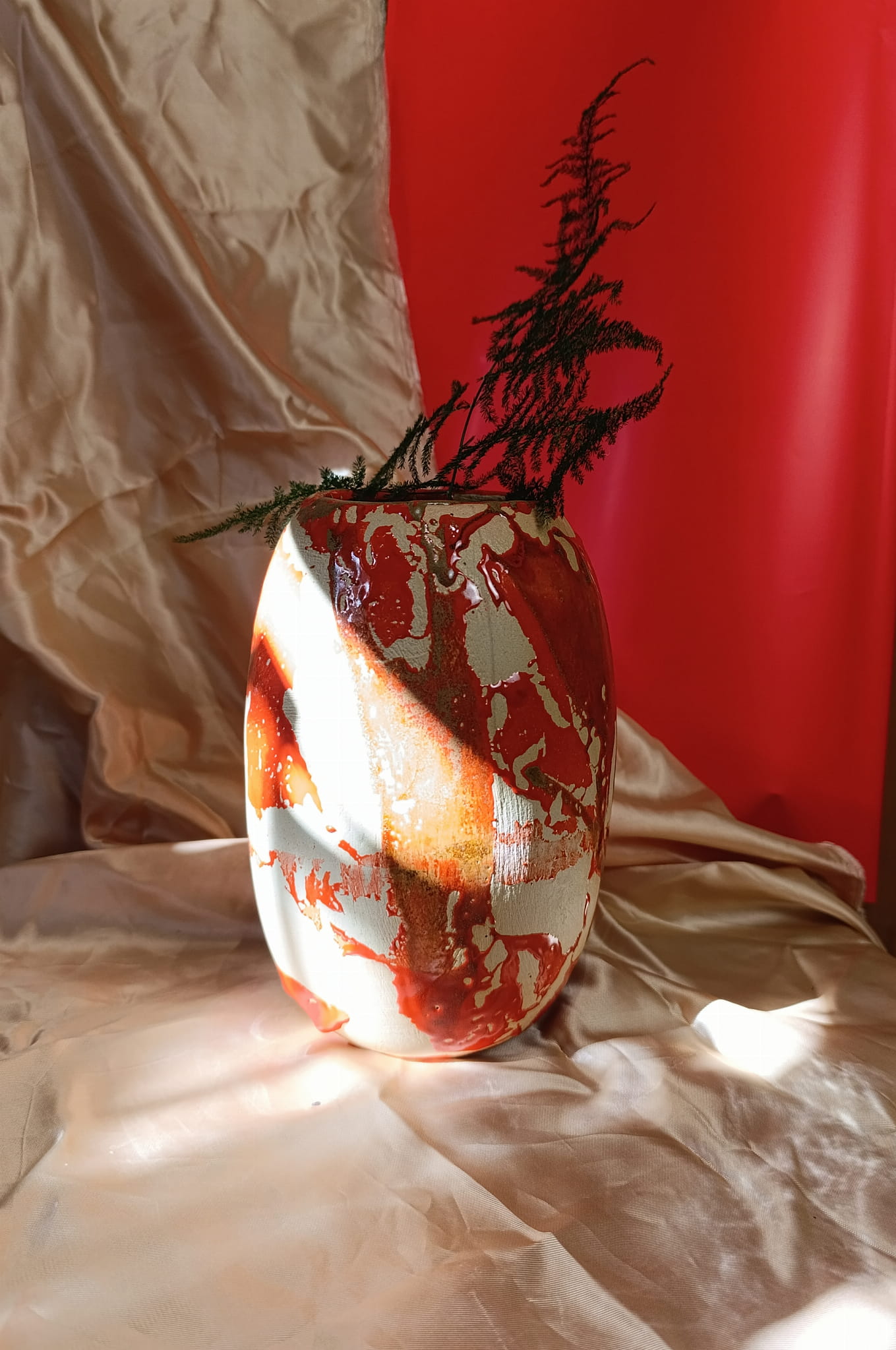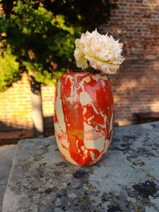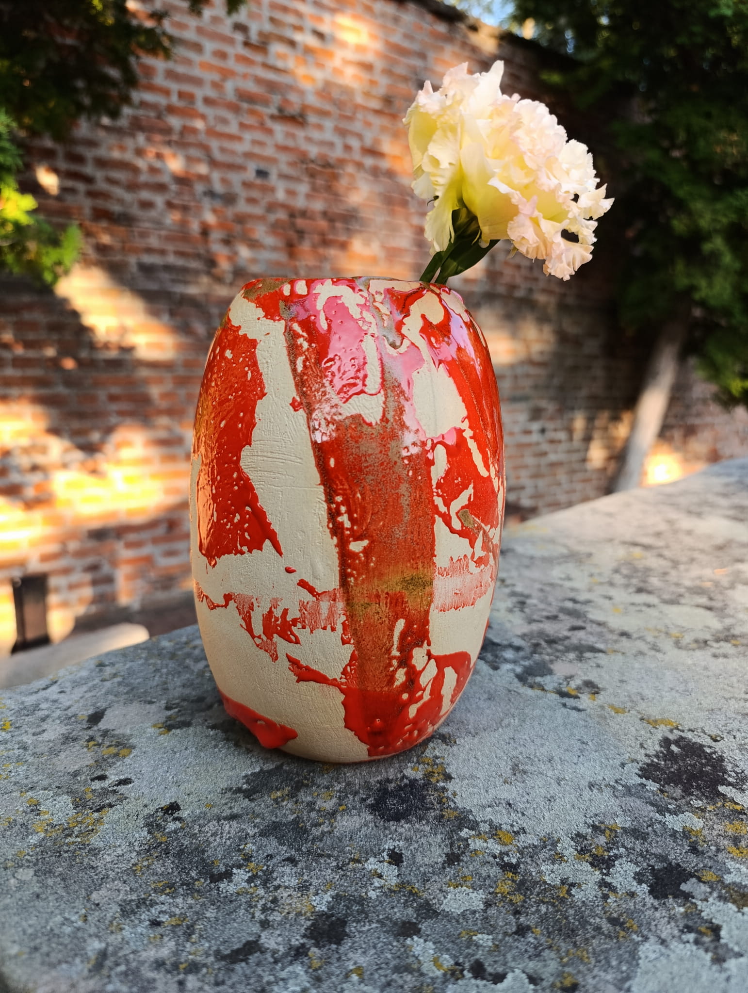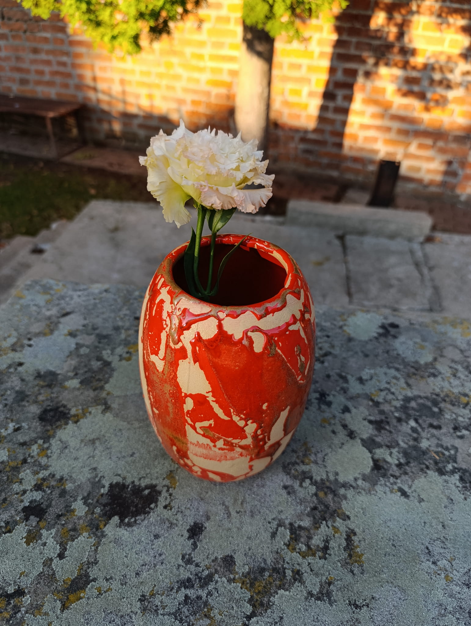 Wazon wykonałam ręcznie. W środku szkliwo rozprowadzone jest jednolicie, z zewnątrz jest nierównomierne, co daje dodatkowy efekt wizualny.